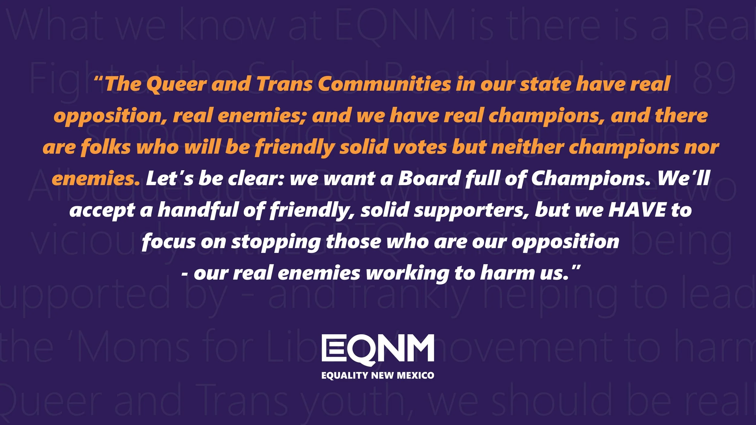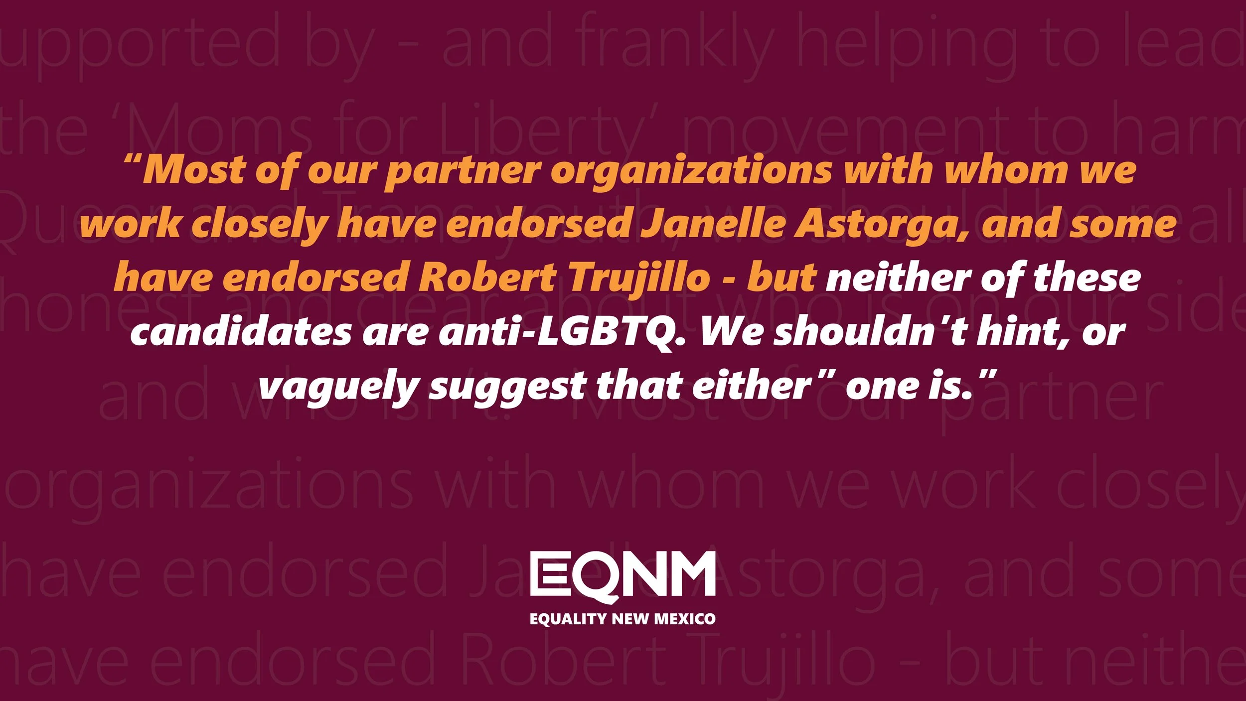 EQNM Champions Linda Serrato, Christine Chandler, and Kristina Ortez were incredible advocates this week. We’re not surprised to see them on the front lines, since they have previously supported legislation that helps trans people legally change their names, calls for gender affirming care, and expanding the Human Rights Act.