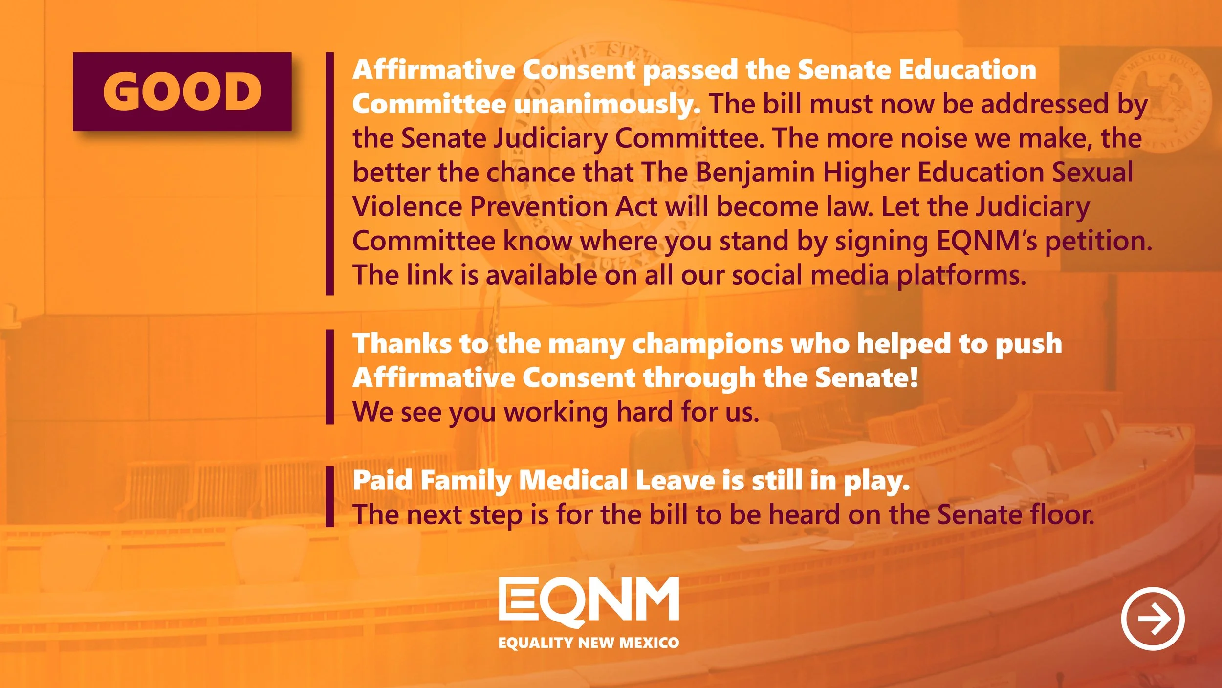 I love helping to create an inclusive environment for all people, and my role at EQNM allows me to build connections within the LGBTQ community. I am so proud to support initiatives that promote visibility and equality.